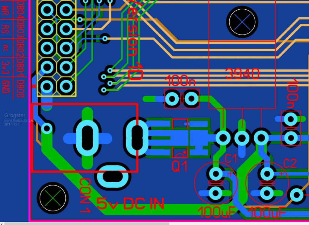 @ Geoff - Yes, I have seen that problem myself in projects of my own on the E100. I dropped the CPU speed to 80MHz and the problem went away. Did you have specific ground pins in mind for beefing up? I guess definitely around the LCD connection and maybe the regulator. Peter(matherp) has already fixed his issues there by hacking the LCD display to use 5v rail. I personally like this idea the most, but the problem is that not everyone would be happy doing it. ![]() I wonder if running a thick-ish wire from the LCD ground DIRECTLY to the regulator ground on the rear of the PCB would help that issue? A nice easy fix, and anyone can do it.... @ Lew - Pin58. No, this has not changed. EDIT: OK, I have beefed up the copper to the 3v3 rail and ground. They were 0.8mm, they are now 1.5mm. I have duplicated the 0.8mm copper track to the 3v3 rail on the top and bottom copper and joined them to the 1.5mm supply rail with an exposed via that you fill with solder as part of assembly. That should help for the next lot of boards with any luck. ![]() One thing I can't remember is that the pin labelled "nc" on the 5" LCD seems to have a 3v3 supply rail connected to it on one of the internal layers, but I don't remember why. Geoff or matherp will remember why. Can one of you gents remind me? EDIT: This track here. Light brown, connected to third pin down from the top on the left, legend says "nc" for no-connection. ![]() EDIT: Ohhhh, wait a minute..... I think that 3v3 connection is for the 7" LCD's if you elect to use one with the E100 mainboard. On the 5" LCD it is indeed no-connection so goes nowhere. Might therefore beef up that connection too. Smoke makes things work. When the smoke gets out, it stops! |