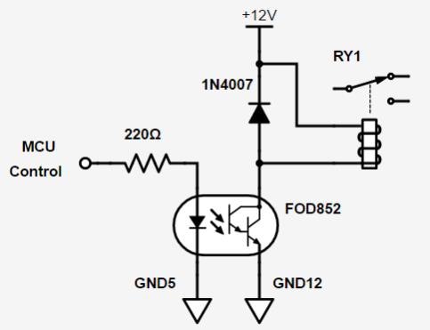 If you want to do it with only one output you could have 2 opto diodes in parallel (one reversed of course) and run with a series RC from uM output (other side of opto-diodes are connected either to +ve or -ve -doesn't matter, and uM set high or low on power-up routine. Assume 3.3V supply,2.1V across opto and 5mA required to turn on opto, and 10mS pulse required for relay gives following calculations. V=3.3-2.1 = 1.2V Ipeak=2*5mA=10mA R=1.2/10mA = 120ohm t=RC....or C=t/R....C=10/.12 uF =100uF should do it Series capacitor means zero DC current consumed (if left on or off) Assuming these are pulsed (latching) relays If 10mA or more is required it may be pushing output current limits, is so use BC108 +BC158 or similar TUN/TUP (cheap NPN/PNP) pair with collectors to rails (NPN to +ve, PNP to -ve) emitters commoned and connected to RC (with a smaller resistor) bases commoned and connected to uM Regards, Phil |