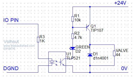 - don't forget the diode across the output (switch off of valves typically generates spikes).