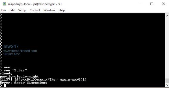Matherp I installed the latest version of Picromite tonight but I'm getting a weird error I don't have that line of code in my program I had no issues with the previous version I was using, although it was probably 2 - 3 versions ago, I didn't upgrade when you included the code for graphs at first Any ideas? I've sent you the full code by message as it contains my logins for the various weather stations |