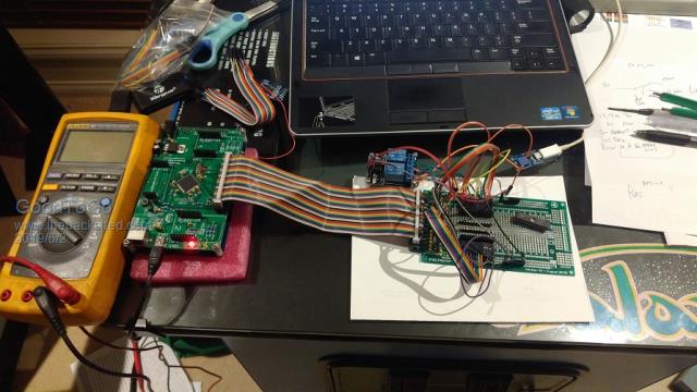 The E100 had plenty of 5v tolerant pins for this application, and direct wiring it made the software side of things a lot easier. One thing though, because I am using pins 66 and 67 on the E100, I had to remove the plug-in RTC module from it, because it was pulling both pins up to 5v. (Made two of the data lines all screwy and took me longer than I care to admit to figure it out)