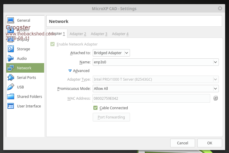 With these settings, I can access the shared folder via the XP VM back to the Linux folder for exchanging files etc - that is working fine, so the network is working.