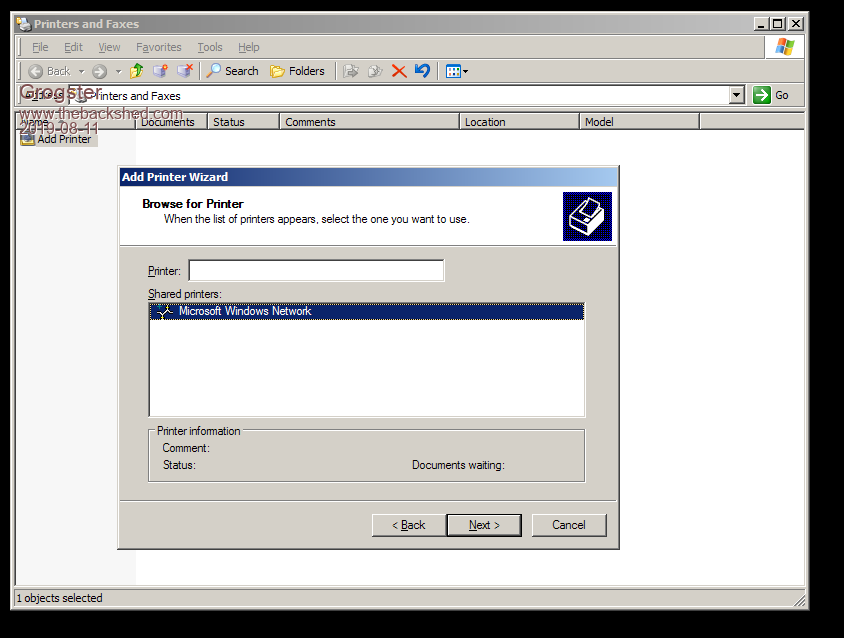 Today's experiment, is trying to get the XP VM to talk to the printers I have installed in Linux.