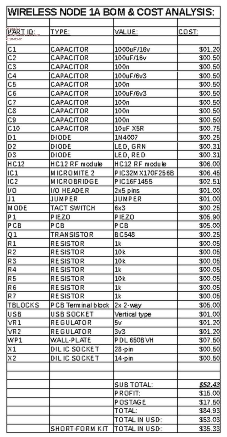 FULL KIT including PCB, the MM2 170 chip, the 1455 microbridge chip, the HC12 RF module and a blank PDL wallplate to assemble it all into: US$53 including airmail postage. SHORT-FORM KIT with most parts and PCB, but NOT INCLUDING the MM2 170 chip, the 1455 USB chip, the piezo, the HC12 RF module or the blank wall-plate: US$35 including airmail postage. Many people will already have MM2 chips, 1455 microbridge chips and HC12 modules, so the short-form one would suit those people. If you need everything, then the full-kit would cater to that. If those prices are not too scary, I can add them to my website. Let me know your thoughts. Smoke makes things work. When the smoke gets out, it stops! |
