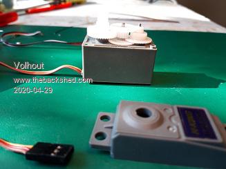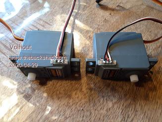 2 servo's modified, note that one is mirrored, so the servo's can be used to drive wheels of a robot without the sensor wires being exposed.