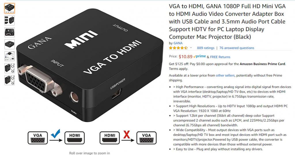 I just went through three different VGA->HDMI adapters and thought you may find this useful. First, a disclaimer that what I’m reporting is what works for my setup where my output screen is ASUS MG24U. I make absolutely no claims beyond what I tried which is the only monitor I tried. Your mileage may thus vary. Considerably. With the disclaimer out of the way here is what I found to be the case for my setup with the three adapters I tried: 1. Amazon Basics VGA to HDMI Amazon Basics No joy with this thing. No picture showing, nothing. Tried a couple of USB power sources to no avail. 2. QGeem VGA to HDMI adapter This one produced picture that’s very decent but stubbornly offset by 7 pixels to the right so that the last character on your screen gets cut off. This happened in every resolution above 320x200. Additionally 640x400 was pretty blurry. The deal breaker though was the 7 pixel shift. I don’t know if I got a bad copy of the adapter or if it’s a flaw they all share from this manufacturer but I decided I couldn’t put up with the issue so I kept looking (and buying) 3. GANA VGA to HDMI connector This one is really good. 800x600 mode is very crisp and no annoying timing shifts. Likewise 320x200 is very sharp. My only complaint about this adapter would be that 640x400 is noticeably more blurry than the other two modes I mentioned. I’m not sure if it’s the adapter or the implementation of Maximite but since the modes I mostly care about are sharp I’m sticking with this adapter. Hope this helped those of you seeking a way to use your Maximite with an HDMI display. |