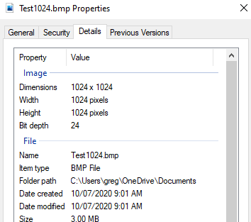 Hi Peter. It's probably just me doing something dumb, but my CMM2 is feezing when running your example code above. I've cut back the code to isolate when this happens: option console serial framebuffer create 1024,1024 page write framebuffer load bmp "Test1024" 'load a 1024x1024 image to the framebuffer framebuffer backup 'back up the image memory mode 4,16 print mm.hres print mm.vres i=0 for j=0 to 1023-mm.vres print j,; framebuffer window i,j,0 next j Here's my console output at the freeze point: Flash: 1K ( 1%) Program (16 lines) 515K (99%) Free RAM: 0K ( 0%) 0 Variables 2048K (39%) General 3136K (61%) Free 480 432 0 1 2 3 4 5 6 7 8 9 10 11 12 13 14 15 16 17 18 19 20 21 22 23 24 25 26 27 28 29 30 31 32 33 34 35 36 37 38 39 40 41 42 43 44 45 46 47 48 49 50 51 52 53 54 55 56 57 58 59 60 61 62 63 64 65 66 67 68 69 70 71 72 73 74 75 76 77 78 79 80 81 ie. The CMM2 freezes / the framebuffer command never returns, when j hit's 81. Observation: 1024 - mm.vres - 80 == 512. (Not that that may have any relevance? LOL) Only other observation is that when I retain the diagonal line, the bottom of the last image displayed (at j=80) appears to be the very bottom of the 1024px high image (ie. where the diagonal line meets the bottom right corner). This is kinda unexpected as the j loop at this point should be displaying a 432px high window at an offset only 81px from the top of the image? I'm sure someone will point out if I'm just doing something dumb? ![]() Edit: For reference, here is my 1024px image properties: ![]() Edited 2020-07-10 09:05 by GregZone |