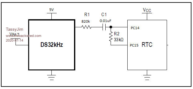 Before you decide on a suitable time reference, you need to decide what your priorities are. How accurate does the time have to be? Are you looking for short term stability or long term accuracy? Back when I worked as a power station operator, we had to control the system frequency to keep the mains frequency within certain limits. We had a mechanical chronometer and a gauge that compared system time with standard time. The mechanical chronometer was kept in step with standard time using the time signals broadcast by radio stations such as WWV. In the mornings, before the load peaked, I would deliberately run the system a bit fast so we were 1-2 seconds in advance. That way, as load increased and frequency dropped, I didn’t have such a hard task keeping the system time within the required couple of seconds. Most mains powered clocks used the system frequency as their time-base so any clock, once set, would be within 2 seconds of standard time forever, as long as the power remained on. To the present time. Computers have RTC modules that keep track of time while the PC is shut down. When the PC starts up, it reads the RTC and from then on, it uses its main oscillator to keep track of time while the PC is running. Most oscillators are in the range of 10ppm accuracy but can be up to 25ppm or more. Now that most computers are internet connected, they can use a time service to adjust the PC time as required. Windows PCs used to check every week or more and would often be a few seconds out. I haven’t checked what the current Windows schedule is. I use a NTP program to manage PC time and, as with Linux PCs, the time is controlled much more often. Any PC using NTP should be with a fraction of a second within 10 minutes of starting up. The original Maximite/Micromite family also have the facility to us an external RTC module which sets the ‘mite time on startup and then uses its internal main oscillator for subsequent time keeping. Micromites that don’t use a crystal oscillator, have the OPTION CLOCKTRIM command to allow adjustment to the internal time-base. Some micromites use a crystal oscillator and don’t have any adjustment available. The crystal will probably be in the 10ppm range. The STM series including the CMM2 have two oscillators – the main 8MHz and the RTC 32.768kHz. While the 32.768kHz timebase cannot be altered, the OPTION RTC CALIBRATE command adds or removes pulses over a 32 second period to keep the RTC on time. 32768 x 32 = 1,048,576 pulse. By adjusting by one pulse, we can achieve a precision better the 1ppm or 0.0824 second per day or 30 seconds per year How about the DS3231/3232 RTC modules. Their precision is quoted as: Accuracy ±2ppm from 0°C to +40°C Accuracy ±3.5ppm from -40°C to +85°C Like all crystals, they will also change over time. The DS3231/3232 RTC have an aging register so you can trim the frequency to a very close precision but if you do use the aging registers, the nice temperature stability is lost. At room temperature, a calibrated STM is better. ![]() If you want long term accuracy you will need an external reference of some variety. I have a lightning detector which needs accurate timekeeping for strike location. It uses a GPS derived timebase and has the advantage of being used as an NTP server. I synchronise all my RPi and PC systems to the server, keeping them within a few milliseconds. I have a data acquisition system using a MX170 micromite. A PC connects to it regularly to retrieve the data so I have the PC program set the micromite clock daily. That keeps the micromite within a second or two which is close enough for the purpose. I intend to change it to a STM F4 based system with local storage so a local clock with more precision is desired. It is likely to be interrogated once a month so something better than the watch crystal as a timebase is preferred. The same system I intend to use for the F4 can be used on a CMM2. Using Internet time sources would require an Internet connection. Something I might do eventually. My preferred source of time for full independence is through a GPS module. Cheap, reliable but does require use of a serial port and they have a relatively high power requirement. Some modules have TCXOs for timekeeping when satellites are not in view. If you intend to turn the CMM2 on each day and off each night, simply using a DS3232 module and setting the CMM2s RTC on power-up might suffice. You could use the Nunchuk port for this without interfering with its normal use. I had a DS3231 connected this way and had the alarm output switching on a FET which in turn bypassed the power switch. ![]() I could set the alarm to switch the CMM2 on at 7am each day. I don’t recommend Queen’s “We are the Champions” at full volume as an alarm clock if you want matrimonial harmony. The system works well and will get used it to fire up a micromite once a week to monitor a battery powered system I have. I just have to change the FET switch arrangement to work at 12 volts without frying the DS3231. You use software to reset the alarm which turns the power off. The DS3231 turns the ‘mite on Software reads the time from the DS3231 and sets the micromite time. The main program runs as required. When it has done its thing, the program turns itself off by resetting the alarm register in the DS3231. I decide on a different approach for the CMM2. Because of the way the STM boards uses dropped pulses to adjust the timebase, leaving the oscillator alone, we can combine the wide temperature stability of the DS3232 with the OPTION RTC CALIBRATE command to get a 1pps precision over a wide temperature range. The best of both worlds. I decided to use a DS32kHz module. It is the TCXO part of the DS3231/3232 without the aging registers and has the advantage of running its VCC of 5V I connected VCC to 5V before the power switch so battery is used less often. The Vbat is connected to the existing Vbat of the CMM2. The 32768Hz output of the DS