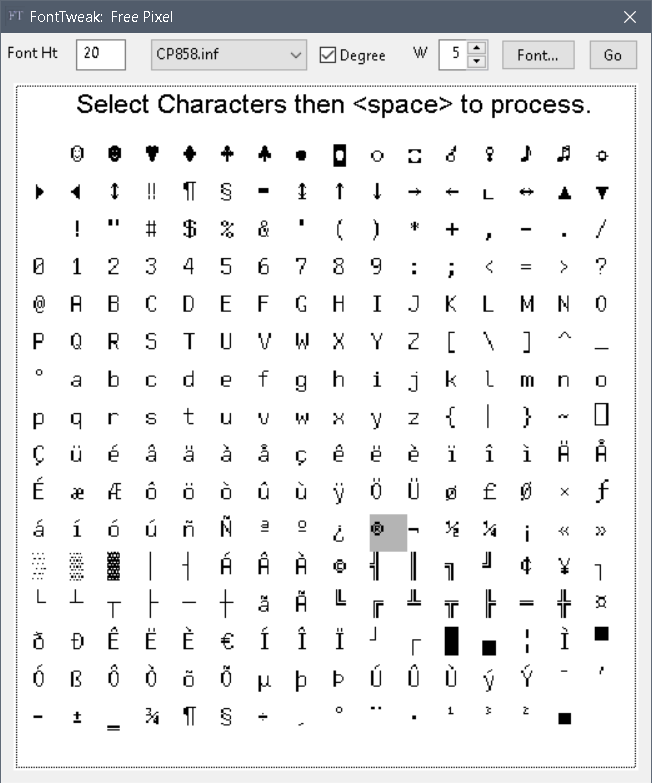 Well, Ok. I downloaded last night. Some questions: - When I have this "fontset"... How add to definition? C format? - The CMM2 have more than one video Mode... I need to make one "fontset" for each Mode? - Fontweak can import ttf font files. CMM2 font are based in some ttf? - Why codepage 858? Look for this link: Wikipedia Codepage 437 Thanks in advance. Edit... it's better 850 and up... yes, as you say 858. Forget 437. ;-) EDIT2: I'm looking in source files... I find Fnt_10x16.h and some others.... I think I need to make a H file for a new ES layout. Are correct? Edit3: I play with Fontweak... I find in my computer a clean good pixel font. Hmmm I understand.... If I want a key with the symbol selected.... on key definition layout, I need to put the char code corresponding to correct character? Yes? And save in, 8 bit C, 32 bit C, FNT for CMM2? Best pixel resolution? 8x16 as default CMM2? Sorry for many many questions...Edited 2020-08-13 17:26 by Hark0 ZX-UNO: ZX-Spectrum Clone with FPGA |