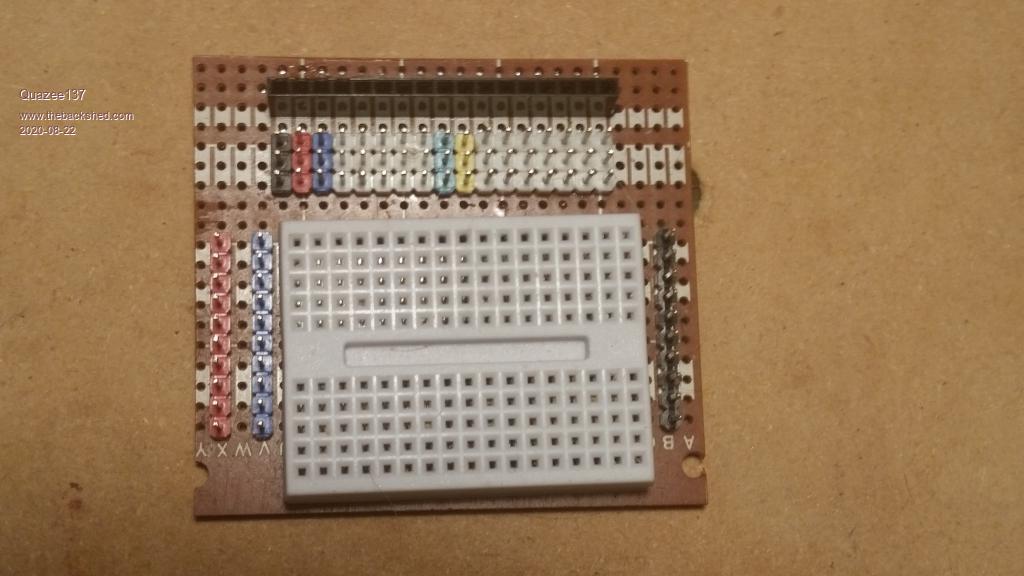 The 5.0V is red, 3.3V is blue, GND is black I2C Data is green, I2C Clock is yellow.