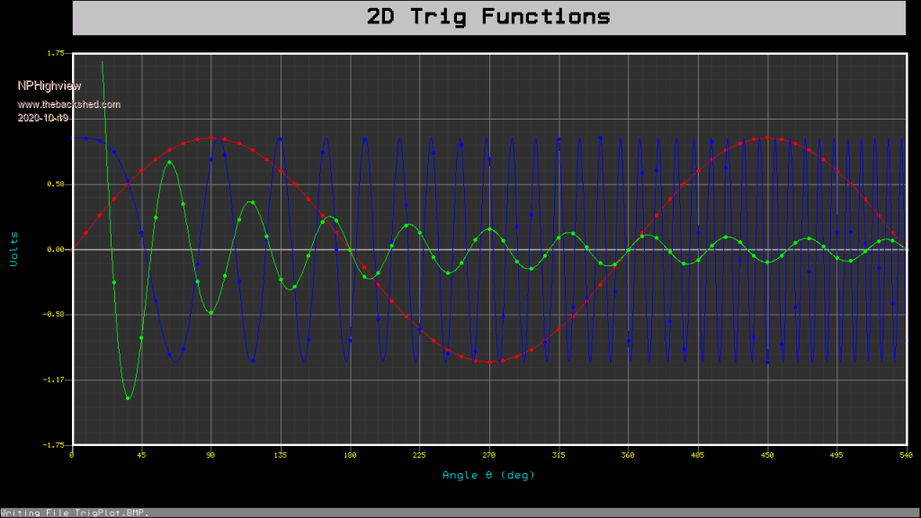 Thanks to all who have commented, and especially Peter, who have helped me improve the quality of the plotter package. Based on his recent RC5, I've updated the Y axis labeling to show vertically (though if the firmware is 5.0505 the plotter package still works, just with the Y axis label horizontal). I've modified the demonstration plots slightly for variey here. This still uses OPTION Y_AXIS UP, but pretty much all of the other OPTIONS are, well, optional Hopefully, if this fails at all, it fails gracefully.Here's another plot sample: ![]() And the current listing (sorry, I've got indents set at 2 spaces): ' plotpkg.bas - HP9800-style plotting on the CMM2 ' ' Steve "NPHighview" Johnson October 2020 ' Please contact me via TheBackShed Forum for any questions ' ' Public Domain - Free / Unrestricted Public Use ' ' This should be relatively display mode-independent. YMMV! ' ' ***************************************************************************** ' Set Up Environment ' ***************************************************************************** OPTION BASE 0 ' my personal practice; not required for plotter package OPTION EXPLICIT ' used for development; not required once debugged DIM FLOAT FirmwareVersion = MM.INFO(version) ' Test prior to OPTION ANGLE, Y_AXIS IF FirmwareVersion < 5.0505 THEN CLS : PRINT "Sorry, this software requires firmware 5.0505 or above." : END OPTION ANGLE DEGREES ' Used by sample plots; not required for plotter package OPTION Y_AXIS UP ' Note upright Bitmap capture requires v.5.0506RC4 and up. ' Vertical orientation of Y axis labels requires v.5.0506 ' but will work around with v.5.0505, just horizontally ' Declarations for Plotter package. Available to, but not required by samples ' Naming Conventions: ' ph: Physical gr: Graph tl: Title Box sc: Scaled ' min: minimum ctr: center max: maximum ext: extent inc: increment DIM INTEGER ph_x_min, ph_x_max, ph_x_ctr, ph_x_ext, ph_y_min, ph_y_max, ph_y_ctr, ph_y_ext DIM INTEGER gr_x_min, gr_x_max, gr_x_ctr, gr_x_ext, gr_y_min, gr_y_max, gr_y_ctr, gr_y_ext DIM INTEGER tl_x_min, tl_x_max, tl_x_ctr, tl_x_ext, tl_y_min, tl_y_max, tl_y_ctr, tl_y_ext DIM FLOAT sc_x, sc_y, last_sc_x, last_sc_y ' Scaled graph parameters. Displays in physical graph area DIM FLOAT sc_x_min, sc_x_ext DIM FLOAT sc_y_min, sc_y_ext DIM INTEGER initial_move = 0 ' A flag that tracks whether a MOVE command preceeded any PLOT command ' Declarations for sample plots - NOT USED in plotter package DIM STRING key$ ' captures user keypresses DIM FLOAT theta, phi, x_3d, y_3d, z_3d, x_2d, y_2d ' ***************************************************************************** ' Define functions and subs ' ***************************************************************************** FUNCTION LOG10(v) as FLOAT ' returns logarithm base 10 of input value IF v <= 0.0 THEN LOG10 = -9.99E19 ELSE LOG10 = log(v)/log(10) END FUNCTION SUB SetPlotParams screenMode, colorDepth ' Establish plot params based on video mode LOCAL STRING Mode_Depth ' Best if used with high-res modes' LOCAL INTEGER vres%, hres% if screenMode < 1 OR screenMode > 13 then EXIT SUB else screenMode = INT(screenMode) if colorDepth < 8 OR colorDepth > 16 then EXIT SUB else colorDepth = INT(colorDepth) if screenMode = 9 AND colorDepth = 12 then colorDepth = 8 ' OK, mode 9 is weird Mode screenMode,colorDepth ' Set video mode and color depth ' Must set the mode to get the resolutions from MM. CLS hres% = MM.hres ' get the actual horizontal resolution from the hardware vres% = MM.vres ' get the actual vertical resolution from the hardware ' Based on screen mode, set all of the plotter parameters ph_x_min = 0 : ph_x_max = hres%-1 : ph_x_ctr = INT(hres%/2) : ph_x_ext = hres% ph_y_min = 0 : ph_y_max = vres%-1 : ph_y_ctr = INT(vres%/2) : ph_y_ext = vres% ' Graph dimensions gr_x_min = 100 ' relatively arbitrary - leaves room for Y axis label and Major Axis values gr_x_max = hres% - 20 ' leaves room on the right. May not be needed gr_x_ext = gr_x_max - gr_x_min gr_x_ctr = gr_x_min + gr_x_ext/2 gr_y_min = 100 ' relatively arbitrary - leaves room for X axis label, tick values and status line gr_y_max = vres% - 75 ' leaves room on top for the graph Title gr_y_ext = gr_y_max - gr_y_min gr_y_ctr = gr_y_min + gr_y_ext/2 ' Title dimensions tl_x_min = gr_x_min tl_x_max = gr_x_max tl_x_ctr = gr_x_ctr tl_x_ext = gr_x_max - gr_x_min tl_y_min = vres% - 50 ' relatively arbitrary - room on top of title. May not be needed tl_y_max = vres% ' a little space between title and graph area tl_y_ext = tl_y_max - tl_y_min tl_y_ctr = tl_y_min + tl_y_ext/2 ' Scaled Operations last_sc_x = 0 last_sc_y = 0 END SUB SUB DrawPlotArea xmin, xmax, ymin, ymax, xjdiv, yjdiv, xndiv, yndiv ' draw background, axes, labels of plot area. LOCAL x, y, xjinc, yjinc, xninc, yninc, xval, yval ' floats. "j" for maJor, "n" for miNor tic marks LOCAL sc_x_e10, sc_y_e10, xval_trnc, yval_trnc ' truncated (base 10) scaled extents and values LOCAL STRING xval_disp, yval_disp ' truncated string values ' Set scaled graph values from parameters passed here. No need to bother user with all this stuff sc_x_min = xmin sc_y_min = ymin sc_x_ext = xmax - xmin ' ext is "extent" sc_y_ext = ymax - ymin sc_x_e10 = 2-FIX(LOG10(ABS(sc_x_ext))) ' calculates the number of digits to display on axis labels sc_y_e10 = 2-FIX(LOG10(ABS(sc_y_ext))) ' calculates the number of digits to display on axis labels xjinc = gr_x_ext/xjdiv ' calculate the physical increment for the maJor divisions yjinc = gr_y_ext/yjdiv xninc = xjinc/xndiv ' calculate the physical increment for the miNor divisions yninc = yjinc/yndiv BOX gr_x_min, gr_y_min, gr_x_ext, gr_y_ext, 1, &H303030, &H303030 ' dark grey background for x = gr_x_min to gr_x_max+1 step xninc ' Minor X Axis tick marks LINE x, gr_y_min, x, gr_y_max, 1, &H383838 ' draw inside the plot box next x for y = gr_y_min to gr_y_max+1 step yninc ' Minor Y Axis tick marks LINE gr_x_min, y, gr_x_max, y, 1, &H383838 ' draw inside the plot box next y xval = xm