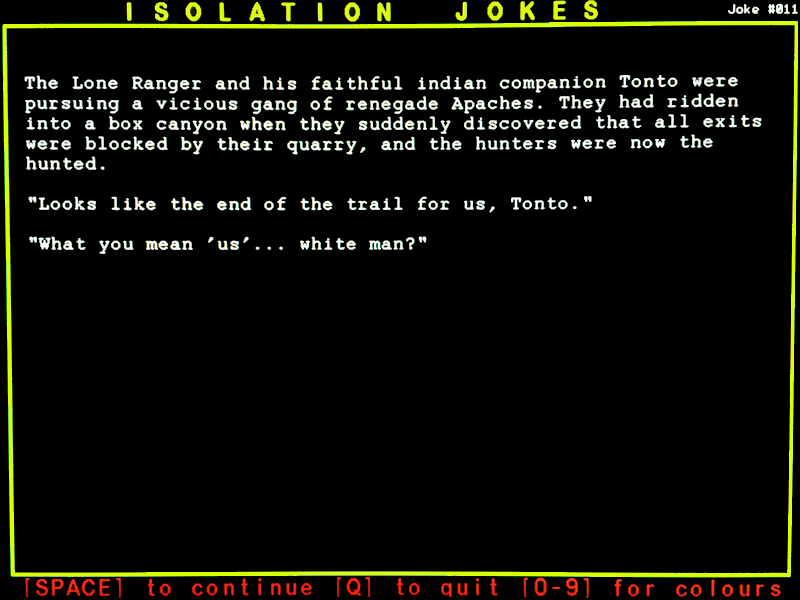 Anyway... for rest and recuperation I've converted (completely rewritten!) a little program I did on the Amstrad 6128 for some friend in the UK during their terrible isolation due to covid. It was just a collection of jokes that displayed in a random order. Here it is now for the CMM2.