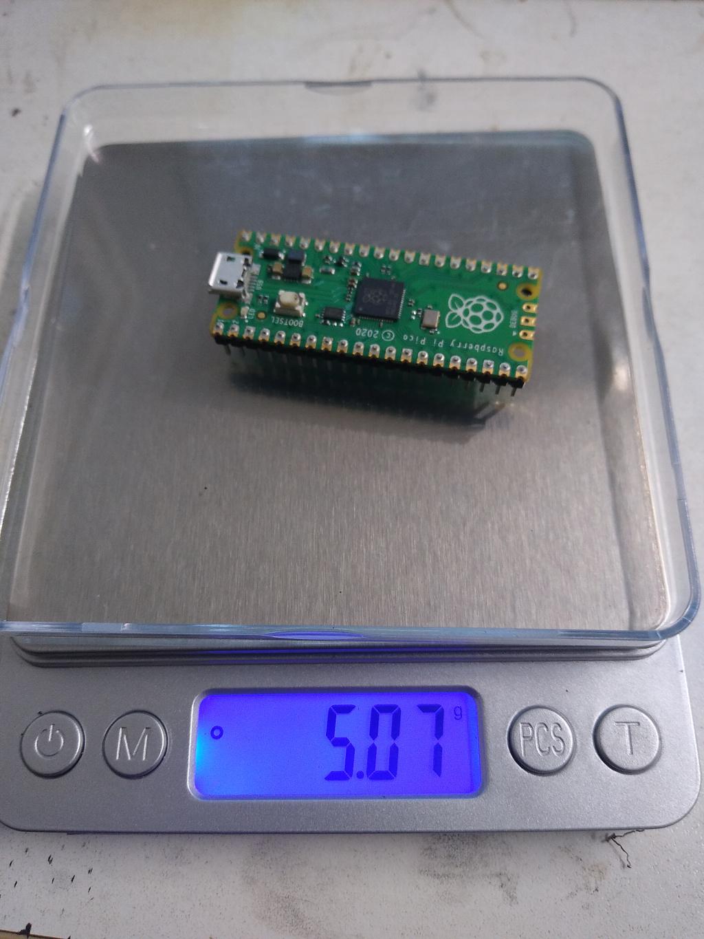 My kitchen scales only weighing full g show 5g for the pinned Pico and 2g for the bare board. But I am surprised how close this is to your result.