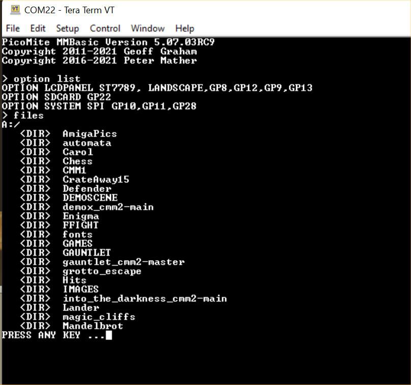 Forum Index : Microcontroller and PC projects : picoMite with Waveshare pico LCD 1.3