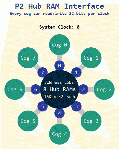 While it's true that the worst case scenario is that a cog has to wait 16 clocks to access the hub (the old P1 only), you wouldn't do this for super time critical operations.
