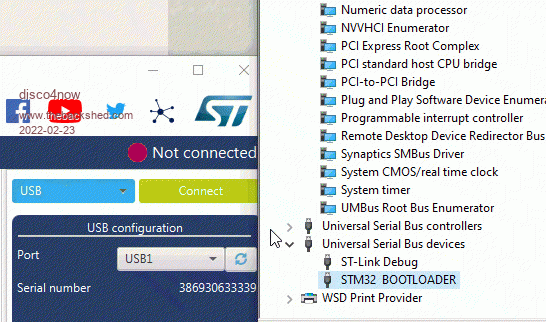 Do you see the STM32 BOOTLOADER entry under Universal Serial Bus Devices in Device Manager.