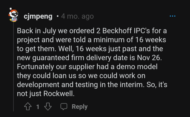 Yeah, their main EtherCAT chip...I think it's Digikey that will have a single unit on July 4th (talk about fireworks  ) And then they'll have 2000+ some time in March 2023. They'll be snapped up.