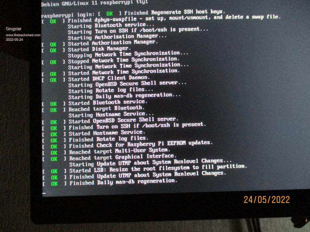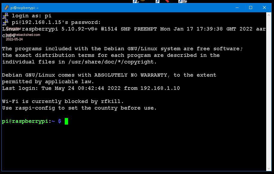 On the PI itself, there was no information as to the IP address, but an IP scan revealed the IP address as 15, so I was able to talk to it then using PuttY and SSH.