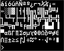 > for i=0 to 7:for j=0 to 15:text j*fw,(i+9)*fh,chr$(127+(i*16+j)):next:next