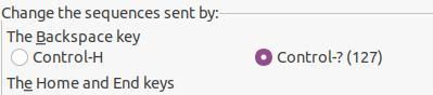 This screenshot is from Putty. The default value (control-127) is wrong for the build in editor in MMBasic.