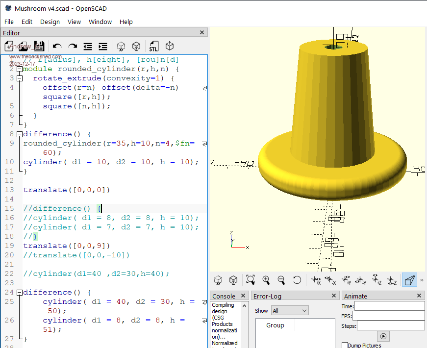 This is the mushroom 'work in progress', complete with a flat bottom and hole up the centre.