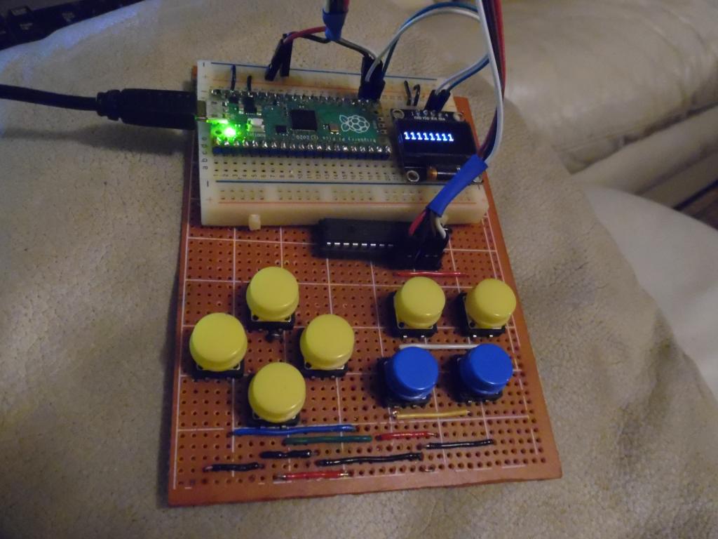 I got mcp23017 port expander and ssd1306 on same i2c to show buttons pressed as binary and works fine...button pad is not as simple to make as seems :)