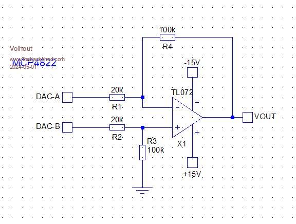 This circuit should translate 2V output of the DAC to +/- 10V.
