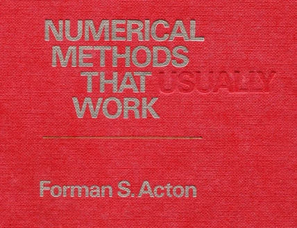 Jim - I love that you're quoting "Numerical Recipes in C", one of my favorites. I have a couple of others that you might like: "Numerical Methods that Usually Work" - Acton (see cover photo - a hoot!) ![]() "Math Toolkit for Realtime Programming" - Crenshaw ![]() ...and my favorite, "Mathematical Methods in the Physical Sciences" by Mary Boas (I've worked pretty much every problem in that book, under Boas' stern tutelage) Live in the Future. It's Just Starting Now! |