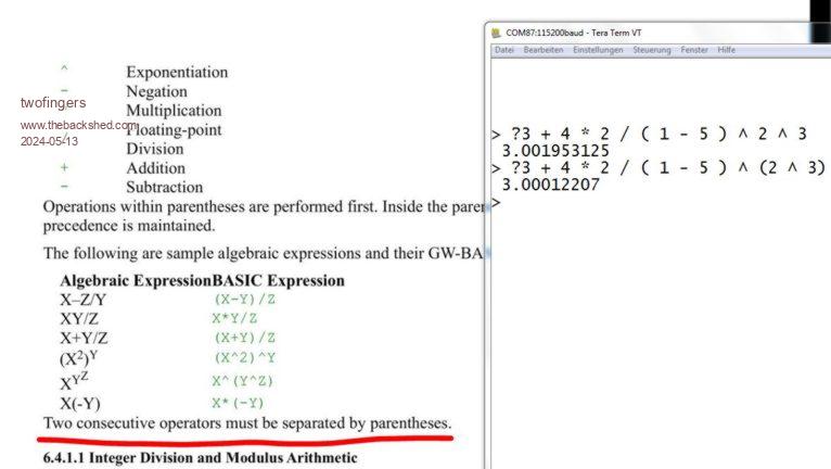 Hi Volhout, I have consulted my old GW-Basic 3.2 reference manual in printed form (unfortunately in German) :-) It actually gives some information about this – everything used to be better™! But see for yourself. It says something about the function hierarchy and the order from left to right, unless brackets are used first. Matthias |