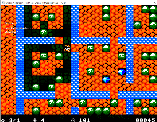 as long as they lie on dirt, they dont fall.Conversely, it means that a rock falls diagonally if there is another rock or gem underneath it and the diagonal path is clear. This is no different to Boulderdash versions i played. It also doesn't claim to be a Boulderdash clone (different tiles, levels, sprites and music) but a game based on the principle of Boulderdash. So if something works differently than in Boulderdash, then that's how it is Cheers Martin Edited 2024-05-28 04:40 by Martin H. 'no comment |
