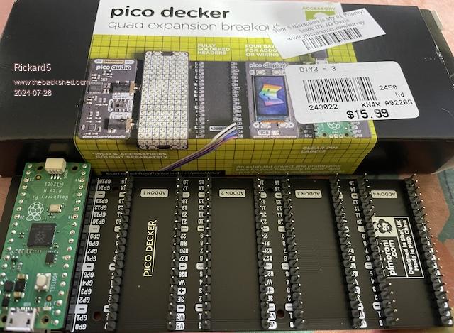 Most of the modules used with the pico plug into the pico. Even the Wavehare exp boards do the same. Pico to Hat Pico dual Pico Quad I use the Pico to Hat with the PHAT STACK. Earlier projects used the MM170 hat stand and PHAT STACK. Here is two of the Pico to Hat setups ![]() ![]() WIP is a Pico stamp to hat to replace my old MM170 when the need to be replaced. Easier to make use of the stamp but better would be Pico Hat Stand. Having FUN Quazee137 side note: I could not upload jpg or png had to convert to gif Edited 2024-07-28 16:28 by Quazee137 |