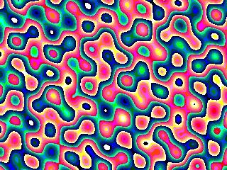 Landscape ![]() MODE 2 CLS Map(1) r=Rad(35):m%=4 For y%=0 To MM.VRES For x%=0 To MM.HRES h=0 For i%=1 To 4 x0=x%/i%:y0=y%/i% a=r*i% Co=Cos(a):Si=Sin(a) s=x0*Co-y0*Si t=x0*Si+y0*Co h=h+Sin(s/5)*4+Sin(t/7)*5 Next If h>-2 Then Color Map(4+Abs(h) Mod 7) Pixel x0*m%,y0*m% EndIf Next : Next |