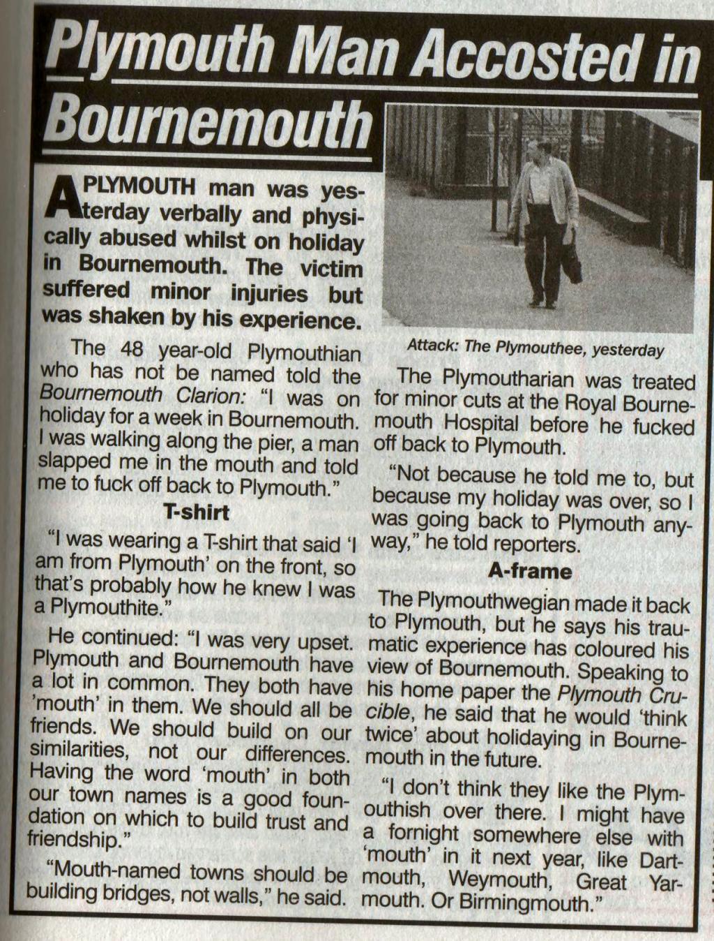 Two almost deaf guys walk in the pub and they see musical instruments set up. One says to the other, "you go to the bar while I get a table and ask who's playing" "Two pints of bitter please and who's playing tonight" "It's some country and western" "Ya what?" "IT'S SOME COUNTRY AND WESTERN" Returns to the table with the beers. "Did you find out who's playing?" "Yeah it's some c**t from Preston" |