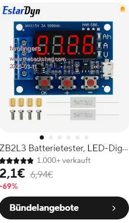 You might also look for zb2l3.I bought several from Ali-Express for about 2 EUR each. The circuit is trustworthy. The batteries to be tested can have up to 15 V. Two 7.5 ohm/5W resistors should be included. The threshold voltage (cut-off voltage is adjustable). This is probably the cheapest solution. Regards Michael Edited 2025-03-11 02:36 by twofingers causality ≠ correlation ≠ coincidence |