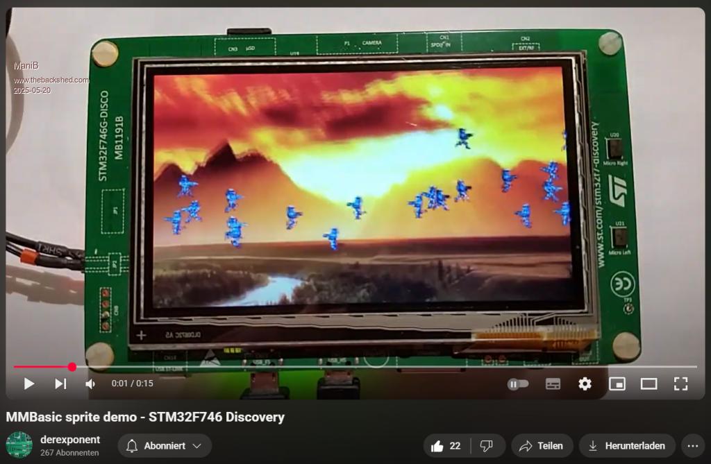 You need the power of the CMM2 to have some fun. Here is a video of my brother who got MMBasic running on the STM32F746 Discovery Board: https://www.youtube.com/watch?v=5g3-ztufoNM More infos about on my blog: https://mikrocontroller.bplaced.net/wordpress/?page_id=787 Or her in this forum: https://www.thebackshed.com/forum/ViewTopic.php?TID=7969 ![]() Edited 2025-05-21 00:06 by ManiB |
