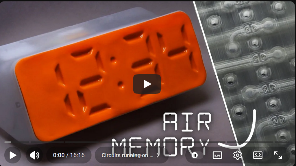 I stumbled across this project by chance Building binary logic using negative pressure. Not particularly practical, but nice to look at and well explained. Air Powered Segment Display ![]() Edited 2026-04-12 15:55 by Martin H. 'no comment |