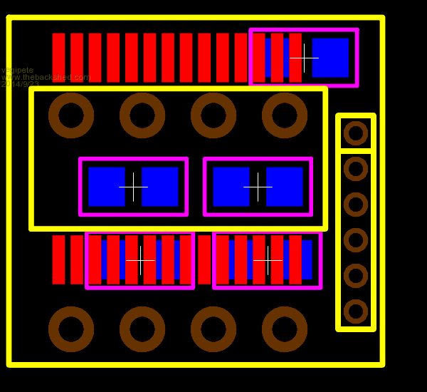 I panelised these boards on a 10cm x 10cm panel and got a cheap prototype done and figuring that I would need to cut them using a bandsaw I separated them by 2mm to allow for the cut.. They Vee-grooved them for me so these boards are actually 17mm x 17mm in size instead of 15mm x 15mm (you can see the extra boundary in the photos)