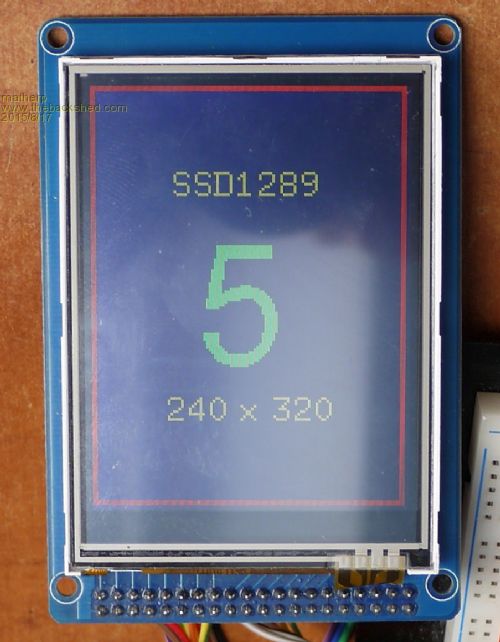 Next driver is for the SSD1289 typically seen in 3.2" 240 x 320 versions This has a 16-bit parallel interface + 3 control lines (RS, WR, and RESET) so although it is theoretically possible to use on a 28-pin uM2 it is more useful on the 44-pin uM2 or UM+. Note that the basic mechanisms of the routines to set up the display are identical to those for the S6D0164 and Peter Carnegie's SSD1963 driver. These displays also support touch input. To use the inbuilt touch mechanism with the loadable display is easy. Run the attached program but comment out the line: Retrn%=Display.Close() Once the GUI TEST DISPLAY is running (lots of circles) press return on the console to stop the program. This will leave the display driver loaded and operational. Then enter "OPTION TOUCH cspin,irqpin" substituting in the the correct pin numbers. Finally enter "GUI CALIBRATE" to calibrate the touch system. Now you can reset the processor and the touch characteristics for your display will have been stored. You can now run your own program using the loadable driver and full touch input support as per the in-built drivers OPTION EXPLICIT OPTION DEFAULT None PRINT "SSD1289 16-bit CFunction Driver Example" 'Initialise the Display Driver ' Function Display.Open(D0%,D1%,D2%,D3%,D4%,D5%,D6%,D7%,D8%,D9%,D10%,D11%,D12%,D13%,D14%,D15%,RS%,WR%,RST%,Orient%) ' NB Tie CS Low and tie RD high ' Orient% is 1 for landscape, 2 for Portrait orientation, 3 for reverse landscape, 4 for reverse portrait dim Orientation%=2 dim Retrn%=Display.Open(11,12,13,14,15,16,17,18,60, 61, 62, 63, 64, 1, 2, 3, 24, 27, 28,Orientation%) ' Display the driver version number print "Driver version is ",Display.Ver() 'Use Font 2 and scale x2 Font 2,2 'Yellow FG, Dark Blue BG Colour &HFFFF00,&H000066 'Clearscreen CLS 'Draw a Red Frame Box 0,0,MM.HRes-4,MM.VRes-4,4,&HFF0000,-1 Text MM.HRES\2-60,(MM.VRes/2)-100,"SSD1289" Text MM.HRES\2-65,(MM.VRes/2)+70,STR$(MM.HRes)+" "+STR$(MM.VRes) Text MM.Hres\2 - 10,(MM.VRes/2)+70,"x" DIM I% 'Countdown FOR I%=9 TO 0 STEP -1 Text (MM.Hres/2)-40, (MM.VRes/2)-45,STR$(I%),,1,2,&H00FF00,&H000066 PAUSE 900 NEXT I% 'Change Orientation to Portrait to show that calling 'Display.Open again in a program is legal Orientation%=1 Retrn%=Display.Open(11,12,13,14,15,16,17,18,60, 61, 62, 63, 64, 1, 2, 3, 24, 27, 28, Orientation%) GUI Test Display 'Close the driver Retrn%=Display.Close() END '**********Append this code and below onto the end of your MMBasic program*********** ' ' Copyright (c) Peter Mather 2015 ' ' Initialise the Display Driver for SSD1289 controlled TFT LCD Panel in 16-bit mode ' i.e. RGB565. ' ' Display.Open initialises the loadable CFunction driver so that you can use all of the ' MMBasic graphic commands in your program. ' ' D0% ~ D15% are the pin numbers for the data bus to the display ' RS% is pin number of RS signal ' WR% is pin number of WR signal ' RST% is pin number of Reset signal ' Orient% PORTRAIT=0,RPORTRAIT=1,LANDSCAPE=2,RLANDSCAPE=3 ' ' After Calling Display.Open, any of the usual MM Graphic commands may be used ' in your MMBasic program, eg BOX, TEXT, LINE, CIRCLE etc ' ' Ver 1.02 2015-08-17 Initial Release ' '********************************************************************************** FUNCTION Display.Open(D0%,D1%,D2%,D3%,D4%,D5%,D6%,D7%,D8%,D9%,D10%,D11%,D12%,D13%,D14%,D15%,RS%,WR%,RST%,Orient%,Size!) as integer LOCAL Pindefs%(20) LOCAL DisplayMetrics%(4) LOCAL CFuncAddr% LOCAL Retrn% 'Open Driver Function, 0=Open, 1=Close, 2=Ver LOCAL DriverFunc%=0 PinDefs%(0)=D0%:PinDefs%(1)=D1%:PinDefs%(2)=D2%:PinDefs%(3)=D3% PinDefs%(4)=D4%:PinDefs%(5)=D5%:PinDefs%(6)=D6%:PinDefs%(7)=D7% PinDefs%(8)=D8%:PinDefs%(9)=D9%:PinDefs%(10)=D10%:PinDefs%(11)=D11% PinDefs%(12)=D12%:PinDefs%(13)=D13%:PinDefs%(14)=D14%:PinDefs%(15)=D15% PinDefs%(16)=RS% PinDefs%(17)=WR% PinDefs%(18)=RST% DisplayMetrics%(0)=Orient% CFuncAddr%=PEEK(CFUNADDR Driver_SSD1289) Retrn%=Driver_SSD1289(DriverFunc%,CFuncAddr%,PinDefs%(),DisplayMetrics%()) Display.Open=Retrn% 'Check Return codes SELECT CASE Retrn% CASE 0 EXIT FUNCTION CASE 1 ERROR "Driver_SSD1289.Open : "+STR$(Retrn%)+" : Driver Already Open - use CPU Restart" CASE ELSE ERROR "Driver_SSD1289.Open : "+STR$(Retrn%)+" : Unknown Error" END SELECT END SUB '********************************************************************************** ' Close the display driver '********************************************************************************** FUNCTION Display.Close() AS FLOAT local Retrn%=Driver_SSD1289(1) Display.Close=Retrn% 'Check Return codes SELECT CASE Retrn% CASE 0 EXIT FUNCTION CASE 1 PRINT "Warning: Driver_SSD1289.Close : "+STR$(Retrn%)+" : Driver Already Closed" EXIT FUNCTION CASE ELSE ERROR "Driver_SSD1289.Close : "+STR$(Retrn%)+" : Unknown Error" END SELECT end FUNCTION FUNCTION Display.Ver() AS FLOAT LOCAL Retrn%=Driver_SSD1289(2) Display.Ver=Retrn% / 100 END FUNCTION '****************************************************************************** 'Driver_SSD1289 2015-08-16 18:50:05 UTC Author:Peter with CFuncGen Ver 2.1.1.0 CFunction Driver_SSD1289 00000278 3c029d00 8c42008c 30830001 10600006 8c420000 8c4300c0 8c450080 ac650000 10000005 30830002 8c430100 8c450080 ac650000 30830002 50600006 8c430104 8c4300c4 8c450084 ac650000 10000004 30830004 8c450084 ac650000 30830004 50600006 8c430108 8c4300c8 8c450088 ac650000 10000004 30830008 8c450088 ac650000 30830008 50600006 8c43010c 8c4300cc 8c45008c ac650000 10000004 30830010 8c45008c ac650000 30830010 50600006 8c430110 8c4300d0 8c450090 ac650000 10000004 30830020 8c450090 ac650000 30830020 50600006 8c430114 8c4300d4 8c450094 ac650000 10000004 30830040 8c450094 ac650000 30830040 50600006 8c430118 8c4300d8 8c450098 ac650000 10000004 30830080 8c450098 ac650000 30830080 50600006 8c43011c 8c4300dc 8c45009c ac650000 10000004 30830100 8c45009c ac650000 30830100 50600006 8c430120 8c4300e0 8c4500a0 ac650000 10000004 30830200 8c4500a0 ac650000 30830200 50600006 8c430124 8c4300e4 8c4500a4 ac650000 10000004 30830400 8c4500a4 ac650000 308