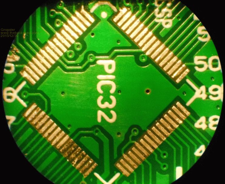 Deceased PIC32 removed, and footprint clean ready for new chip.