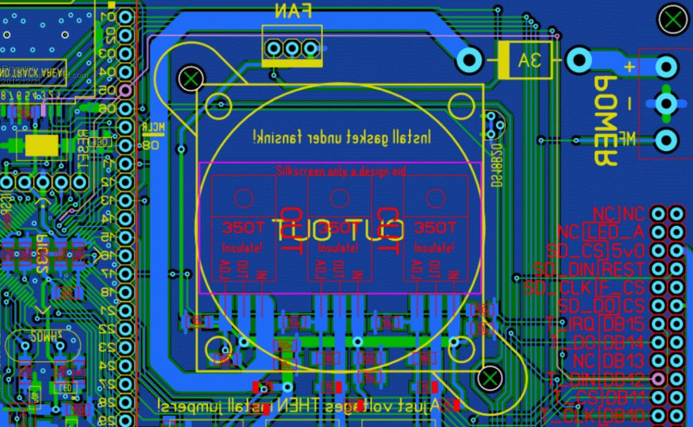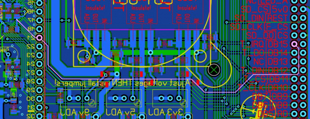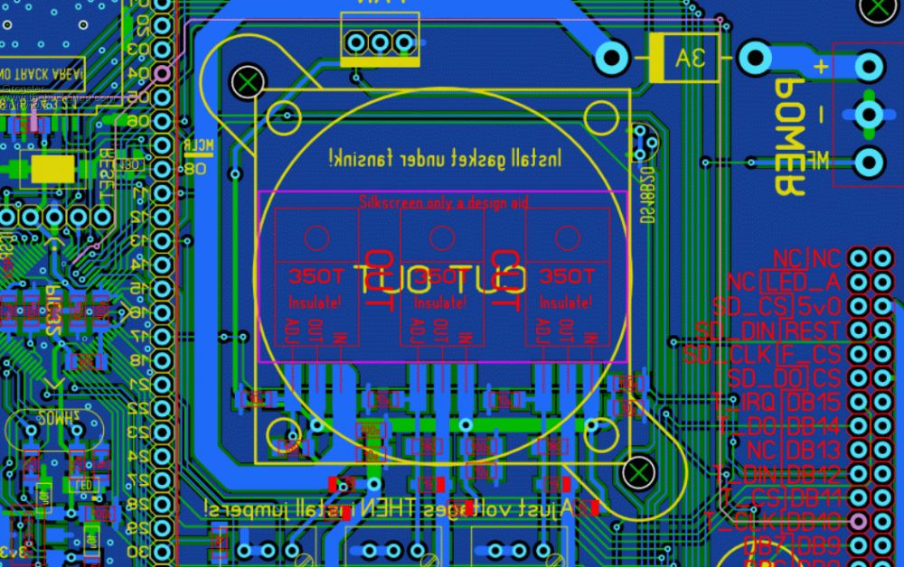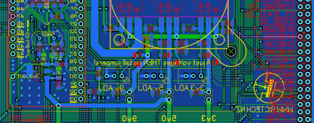 Hi folks. 1) Program firmware B37 2) Cycle power 3) Connect USB console 4) Issue: OPTION LCDPANEL SSD1963_7,L,4 5) Restart MM as requested(cycle power) 6) Connect USB console 7) Issue: OPTION TOUCH 22,21,45 8) Restart MM as requested(cycle power) MM+ dies. LCD backlight blinks off and on at 1 second intervals, just a short "on" blink. USB console dead, native console dead. You have to reflash the chip to get the console back. Does anyone know why that should be? I also tried leaving off the pin45 reference on the touch command, but the same thing happened - continuous attempt to initialize the LCD that the MM cannot get out of. Images of the track layout: (Relevant track in each image is highlighted in pink)