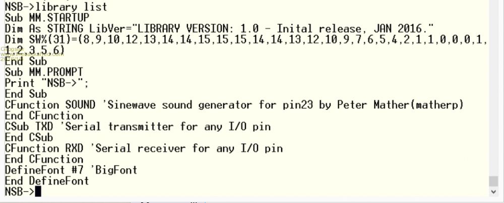 etc SUB MM.PROMPT SetVer etc END SUB SUB SetVer DIM AS STRING LibVer = "... etc ..." END SUB CFUNCTION etc etc etc BTW, I do agree with Rob that the library is best used for just compressing CFunctions, etc. It is good for some other things but you can get caught up in subtle issues that are normally hidden by MMBasic. Geoff Geoff Graham - http://geoffg.net |