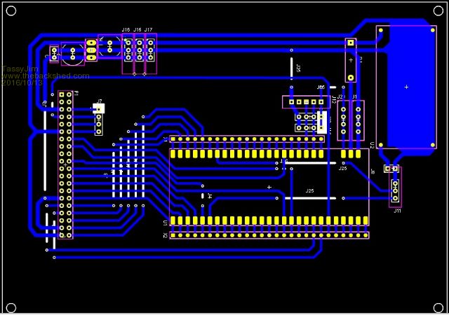 Something like this? ![]() Still a work in progress and I think I will have to change the 40pin connector orientation - will know when the box for it arrives. I still have a few more components to fit and I keep chamging my mind. The board is single sided (which explains all the links) and designed for CNC manufacturer. Jim VK7JH MMedit |