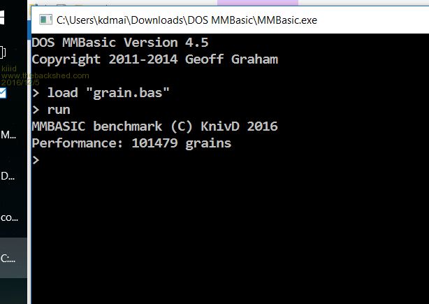 The reference point here is a 5HMz MX470 running MMBasic 5.2 on ELLO 2M in standalone mode (no USB attached). That generates 100 grains performance.