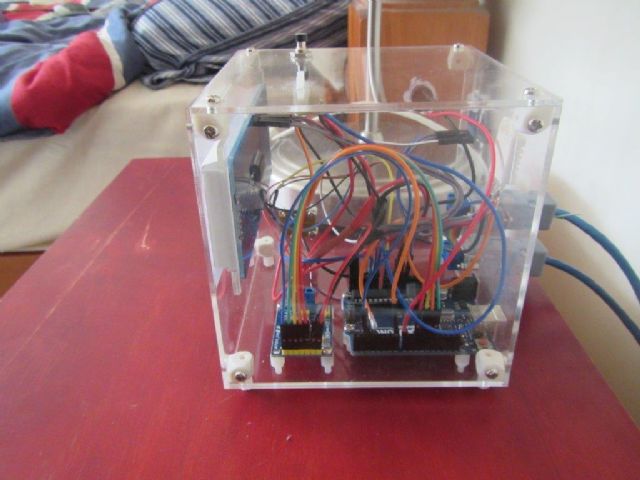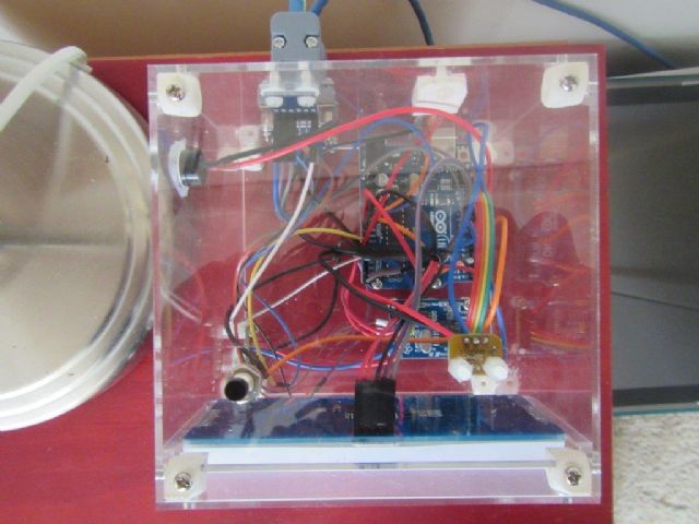 I'm using the Freetronics Light Sensor Module for reading luminance at the moment. All the sensors are installed inside the box but I laser cut openings for each of them to protrude through (apart from the light sensor which sees through the clear acrylic).