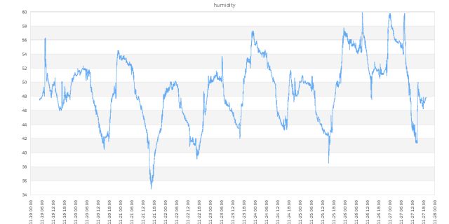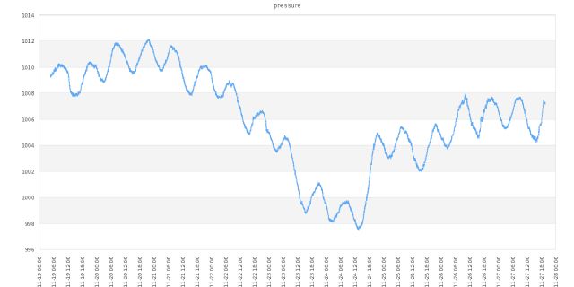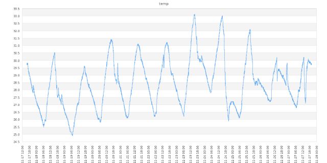 I'm logging the data to a MySQL database every minute. Here is the latest data which is available live to me via my webserver in PHP using JPGraph (I probably should adjust the bottom margin so you can see the full date). Will also move it over to a FLOT JavaScript chart at some stage too.