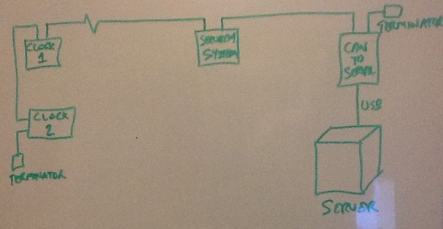 Bedside clock - I got sick of all the clocks in the house being out of time. So this one syncs to Internet time every 60 seconds over a CAN bus. And it has an alarm (just a piezo at the moment) that lets me know it's 6am on a weekday. Doesn't come on on weekends.