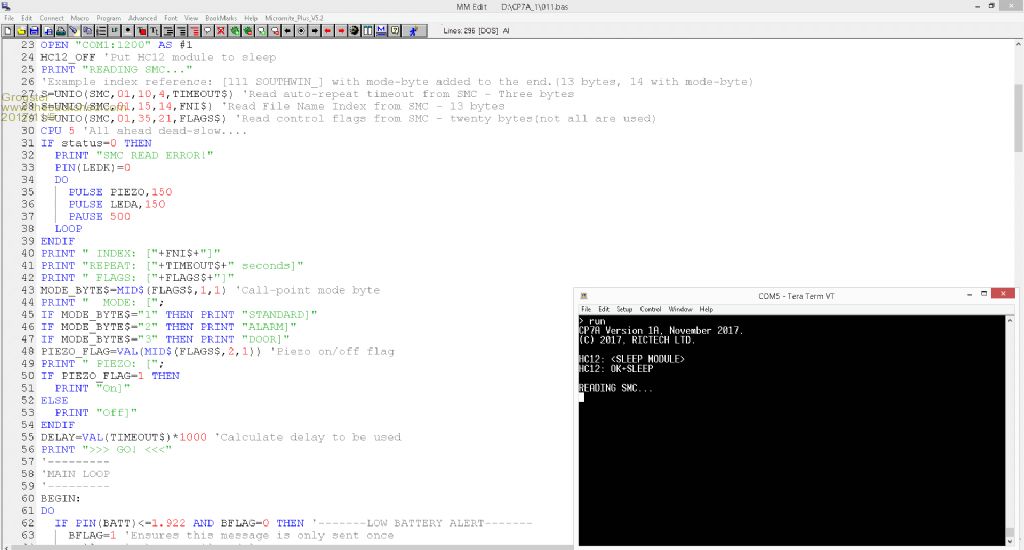 You have "If status=0 Then " but are using 'S' so status will ALWAYS equal zero and should throw a wobbly because it isn't declared. You refer to the HC12_OFF sub but it isn't in the supplied code. Jim VK7JH MMedit |