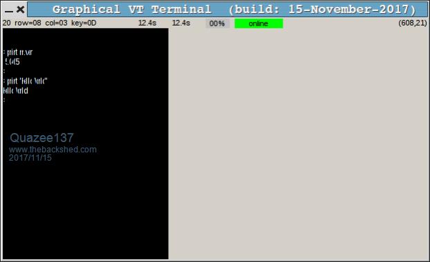 BrianP: as for a command buffer, that would be very difficult to do well. it is only a terminal emulator, and as such is relatively unaware of the state that the micromite is in: editing, at the command prompt, or running a program. it was hard enough just detecting if the editor was running and modifying the speed of pasting to accommodate it.