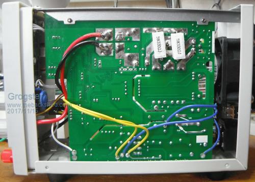 Quite nice inside considering the price! Air-gap slots to separate the HV from the LV sides of the PCB, which is always nice to see with anything connecting to the mains. One thing they are doing, is that the main on/off switch is in the Neutral - naughty, naughty. That along makes it non-compliant as the phase side of the AC is still present at any point on the HV side and earth, even with the switch off. I will be changing this to switch the phase as it should be. That's my only real complaint on the HV AC side. Quite good separation in the AC paths, and acceptable distances between phase and neutral on the PCB unlike some things I have seen. Nice grunty output wires, and inductive filtering on the main DC output.
