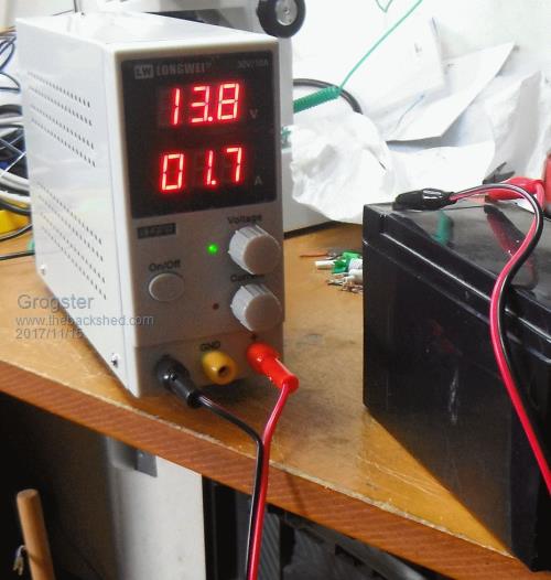 Running with a gell-cell battery as a load. Currrent limited to 2A - seems to be working.